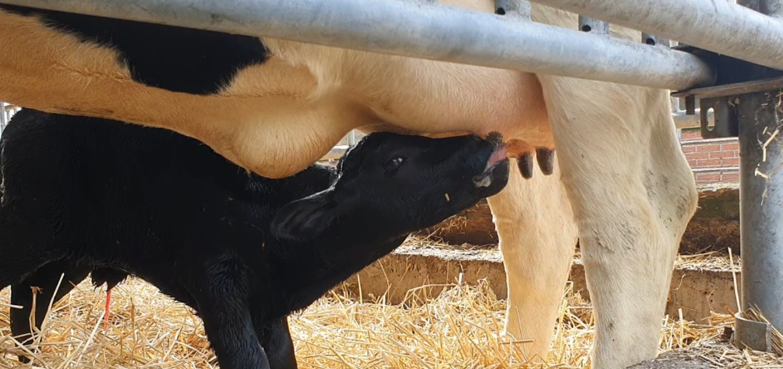Ein Kalb, das unter der Mutterkuh trinkt, beugt sich herunter und streckt seine Nase nach oben. Und das aus gutem Grund. Denn dadurch wird der ganze Körper auf die Aufnahme von Milch vorbereitet. So funktioniert ein Kalb. Der Schlundrinnenreflex läuft dann naturgemäß gut. Um diese Position so gut wie möglich zu imitieren, ist es wichtig, dass der Nuckel nicht zu hoch hängt. Unser Richtwert lautet 65 cm. Dies ist natürlich auch abhängig von Rasse und Bodenbelag. (Stroh oder Gitter). In der Natur wächst das Kalb, aber das Euter bleibt auf der gleichen Höhe.