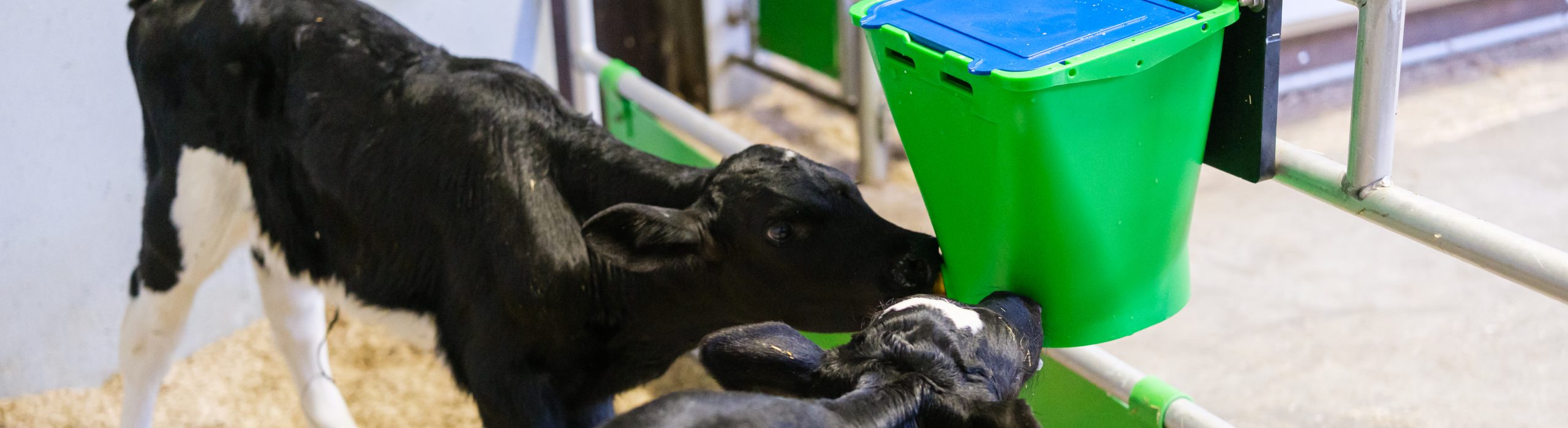 Von Anfang an Buddies: „2 Kälber zusammen an unserer ECF2-Tränke aufwachsen lassen“.